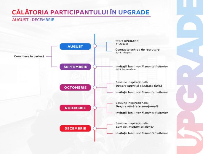 Acum aproximativ o lună, aflam pentru prima dată cine sunt participanții primei sesiuni din programul Upgrade. Imediat ce am încheiat procesul de recrutare, am dat startul programului de învățare ce urmează să aibă loc din această lună până în aprilie 2022.